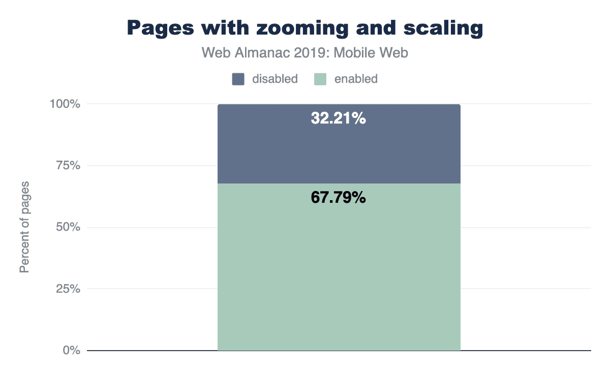 図12.5. ズーム/スケーリングを有効または無効にしているデスクトップおよびモバイルのウェブサイトの割合。