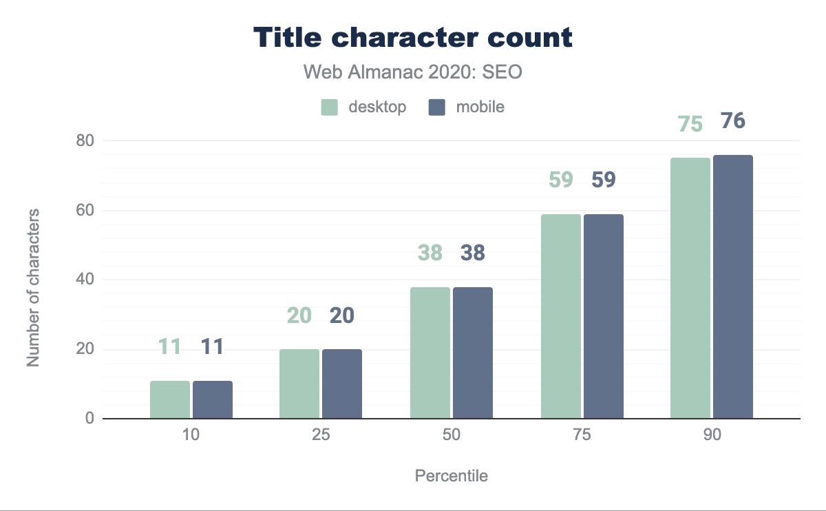 titleタグ: 今年は、デスクトップページの98.75%が1つを備えているのに対し、モバイルページの98.7%もそれを含んでいることがわかりました。 昨年の章では、モバイルページの97.1%にtitleタグが付いていることがわかりました。 -