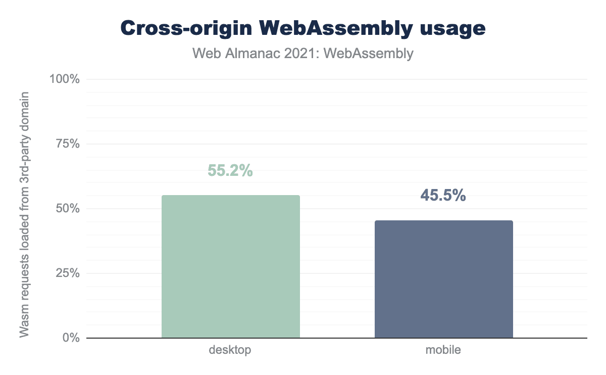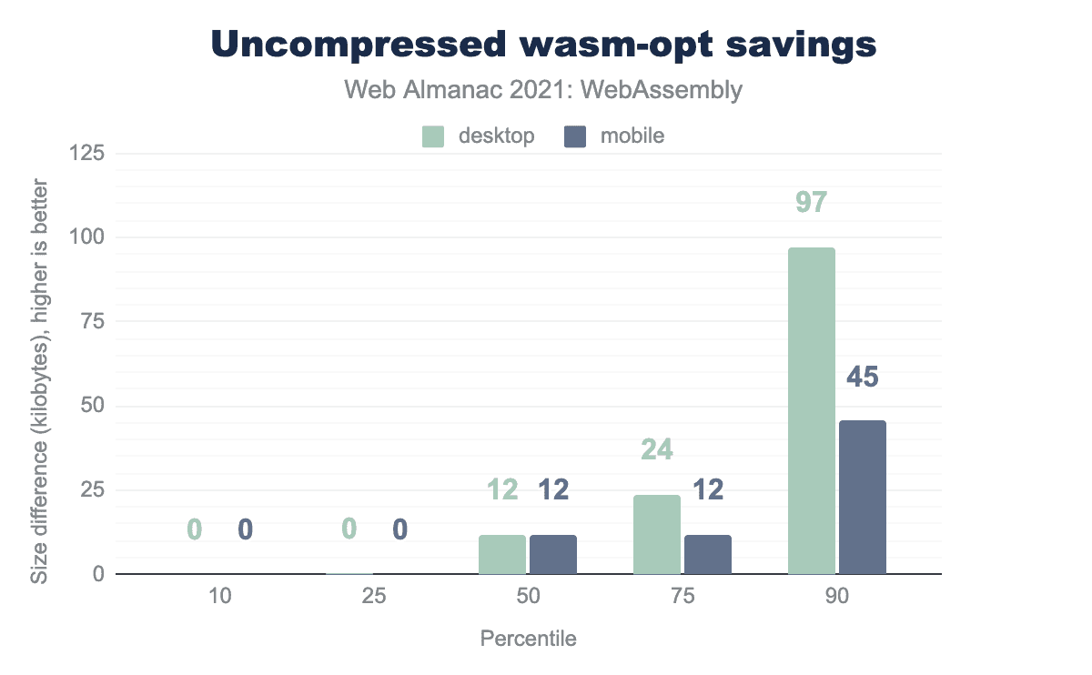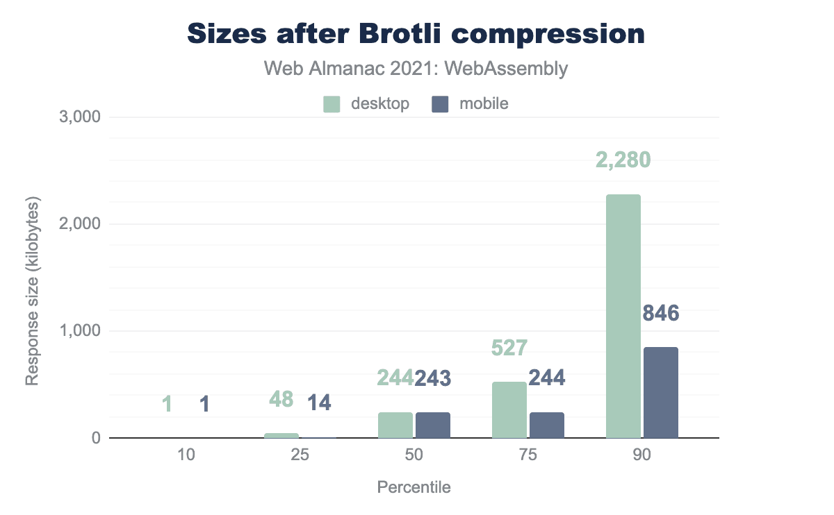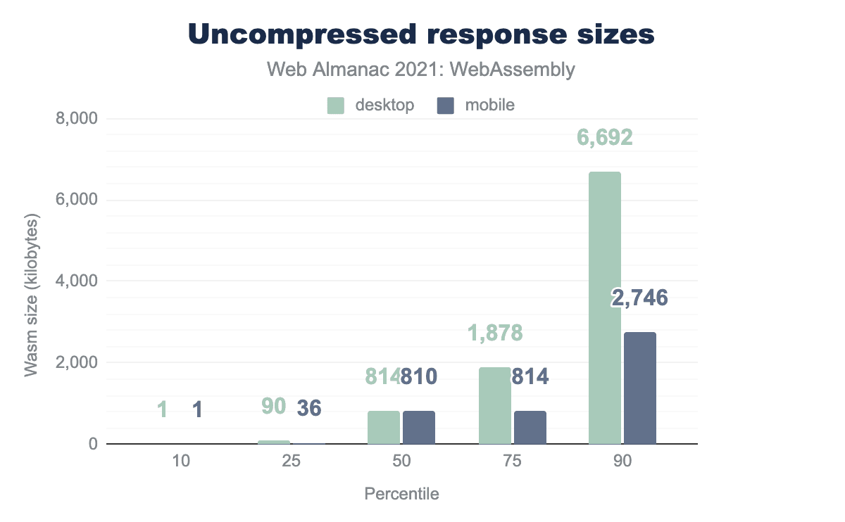 HTTP Archiveの最大レスポンスでは、デスクトップで約44MB、モバイルで約28MBのWasmがダウンロードされます。