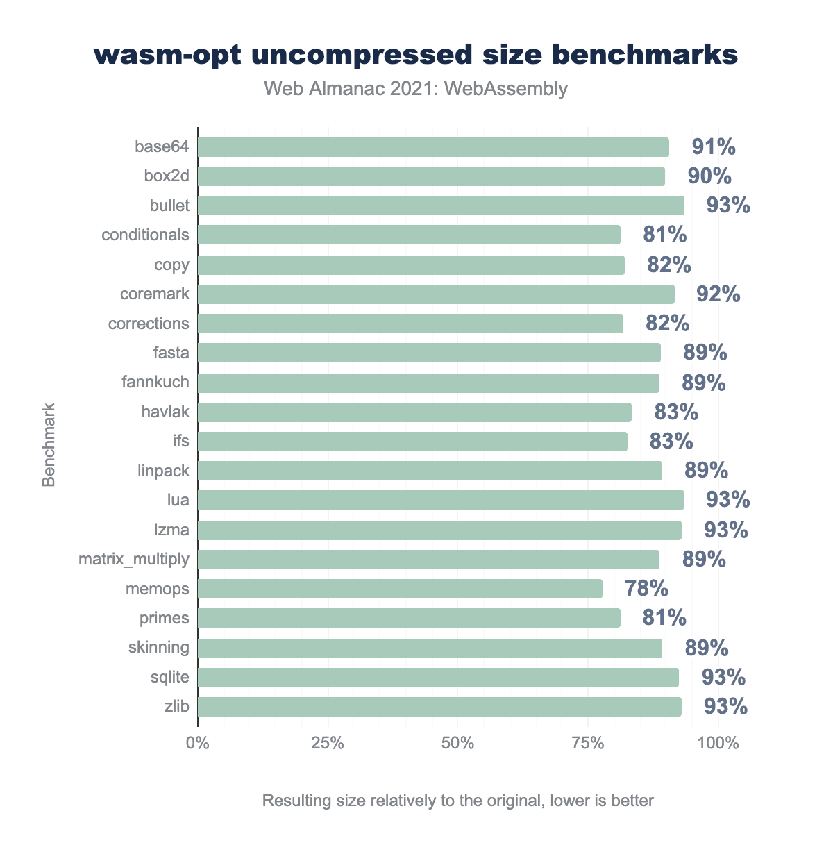 図6.17. wasm-opt の非圧縮サイズベンチマーク。