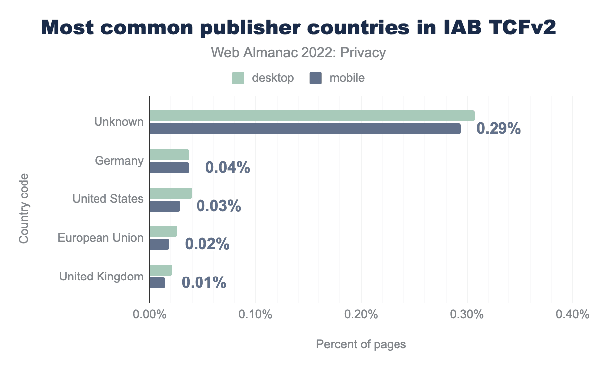 図13.23. IAB TCF v2を使用しているパブリッシャーの最も一般的な国。